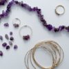 Nos pierres : agate, amazonite, jade, améthyste, citrine, quartz, péridot, grenat.