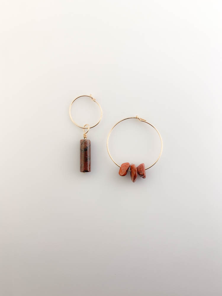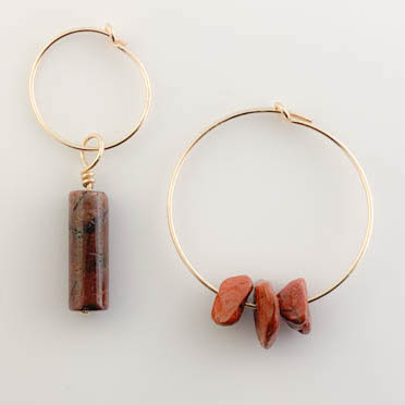 Créoles fines gold filled 15 mm et 25 mm diamètre avec Jaspe.